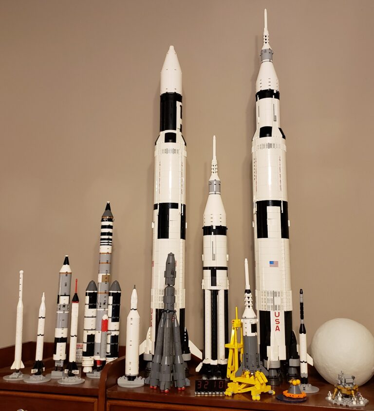 I began to wonder if other rocket model MOCs were available. Soon I discovered that an entire community of LEGO and space fans was designing and building launch vehicles, spacecraft, and even launch infrastructure all in the same 1:110 scale as the Saturn V. I’ve now built several of these MOCs and have enjoyed discovering them, sourcing parts, building, and even collaborating with a few of the designers to solve build problems and suggest improvements. It’s been a real joy to see my collection of space MOCs grow and I’ve now set a goal to build every major launch vehicle that’s reached orbit. I also hope to give back to the community by sharing my experiences building these MOCs and making it easier for other to find, source, and build their own collection of LEGO space MOCs.