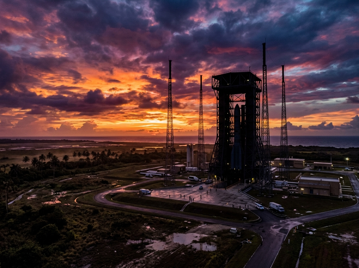 Guiana Space Centre Ensemble de Lancement Ariane 6 (ELA-4) is the dedicated launch complex for Europe's Ariane 6 rocket at the Guiana Space Centre in Kourou, French Guiana, located at 5.3° North latitude. First used for Ariane 6's inaugural flight on 9 July 2024, ELA-4 features a mobile launch table that forms the interface between Ariane 6 and the fixed launch zone infrastructure, traveling from the rocket integration building to the pad on the AIT-250 autonomous transporter. The complex includes a fluid system for liquid hydrogen and liquid oxygen propellants, an active exhaust flame deflection system, and a launch control center connected to Ariane 6's onboard systems by a forest of umbilical connections. ELA-4 is designed for a target cadence of up to nine Ariane 6 launches per year.