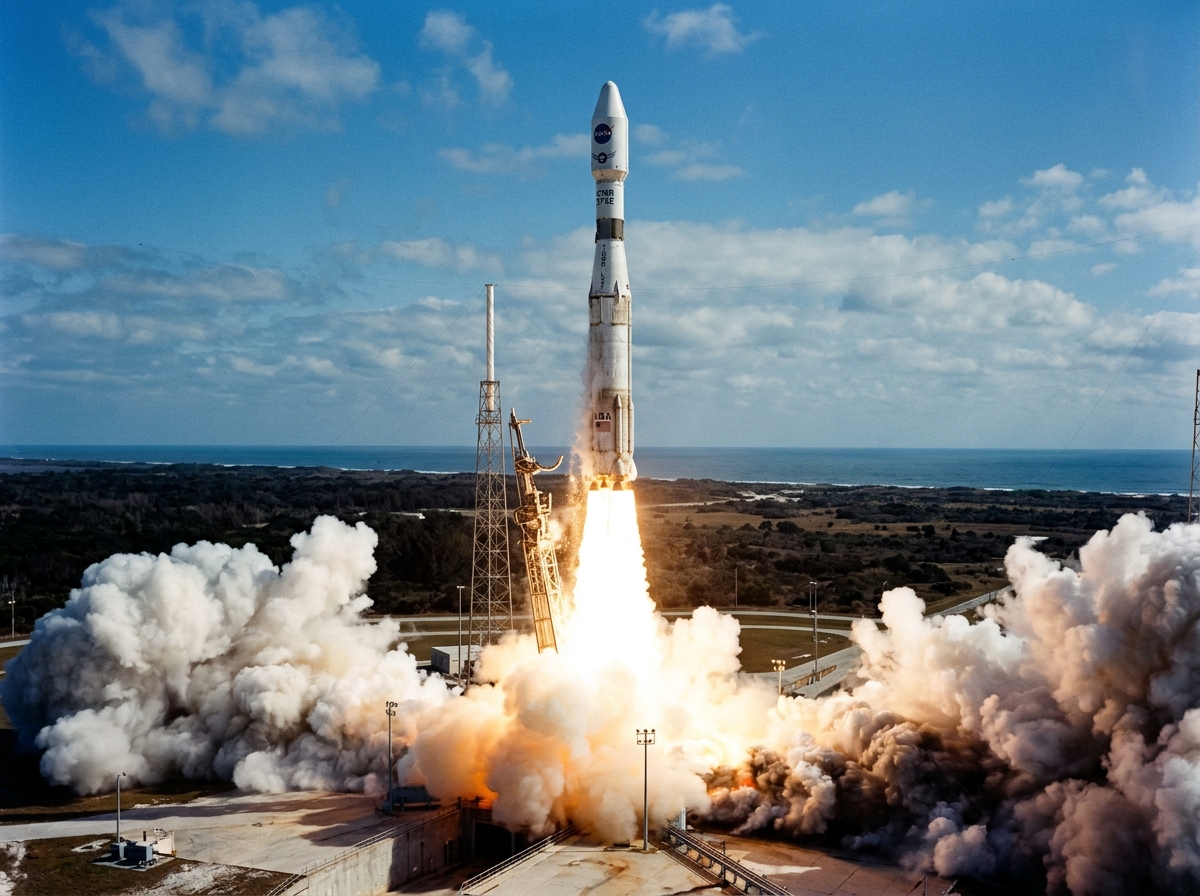 Thor LV-2F Star 37XE/Star 37S-ISS is a multi-stage launch vehicle combining the Long Tank Thor booster with sequential Star solid upper stages for Air Force meteorological and navigation satellite missions requiring precise high-altitude orbit insertion. First flying on 11 September 1976 under the Thor IRBM Program, it stood 23.5 meters tall with a 52,200 kg launch mass. The combination of Star 37XE and Star 37S-ISS stages provided sequential burn capability enabling complex multi-burn orbital profiles.