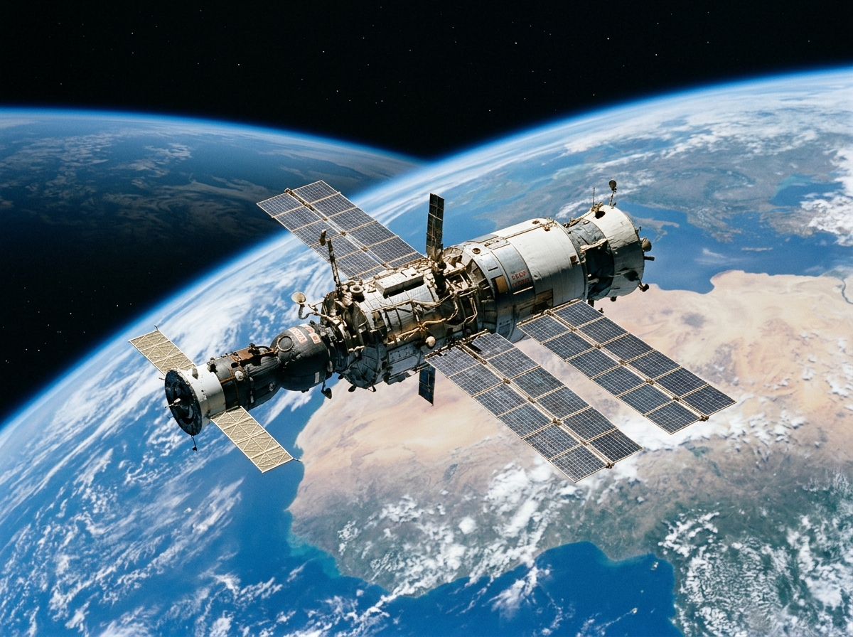 Salyut 7 (DOS-6) was the final Soviet civilian space station in the Salyut series, launched on 19 April 1982 aboard a Proton-K and operating until 1991 as an extraordinary testbed for extended-duration spaceflight. It hosted record-setting missions including Valentin Lebedev and Anatoly Berezovoy's 211-day stay in 1982 and a 237-day mission in 1984–1985, while also conducting pioneering EVAs for external construction and maintenance experiments. Most dramatically, the station was successfully resurrected from a complete power failure in 1985 when cosmonauts Dzhanibekov and Savinyykh manually boarded the tumbling, frozen station and restored it to full operation — one of the most remarkable space rescue missions in history. Salyut 7 reentered the atmosphere in February 1991.