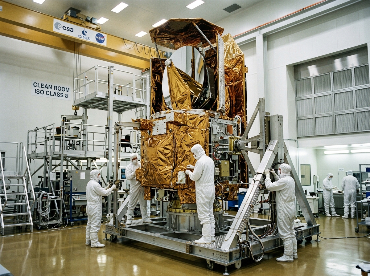Herschel Space Observatory was an ESA infrared space telescope launched on 14 May 2009 aboard an Ariane 5 ECA to the Sun-Earth L2 Lagrange point, operating from 2009 to 2013. At the time of launch it was the largest infrared telescope ever placed in space, with a 3.5-meter primary mirror cooled by superfluid helium to within a degree of absolute zero. Herschel observed star-forming regions, the cold dust in galaxies, and the composition of comet atmospheres across far-infrared and submillimetre wavelengths largely inaccessible from the ground. Its observations fundamentally advanced understanding of how stars and galaxies form, and it detected water in the atmosphere of Uranus and in protoplanetary disks around young stars.