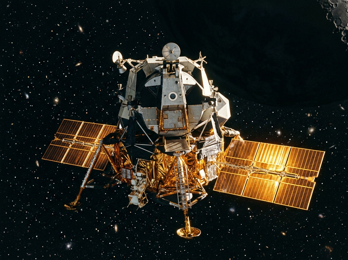 The Apollo Lunar Module (LM) is the only crewed spacecraft designed and flown exclusively outside Earth's atmosphere, serving as the descent stage and ascent stage for NASA's Moon landings between 1969 and 1972. Built by Grumman Aircraft Engineering, it carried two astronauts from lunar orbit to the lunar surface and back using separate descent and ascent propulsion systems, each with a single fixed-thrust engine burning hypergolic propellants for automatic ignition reliability. Twelve astronauts descended to the lunar surface across six successful landing missions from Apollo 11 through Apollo 17, exploring six distinct locations and returning 382 kg of lunar samples. The LM remains the only vehicle to have carried humans to the surface of another world.