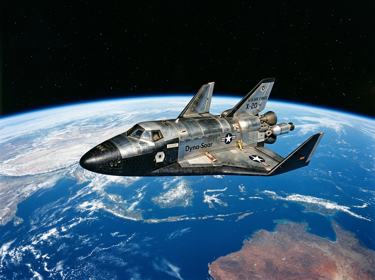 X-20 Dyna-Soar was a US Air Force program to develop a crewed orbital spaceplane capable of reconnaissance, bombing, and satellite interception missions, launched atop a Titan rocket and recovered via unpowered glide landing like a conventional aircraft. Studied and partially developed from 1957 to 1963, the delta-winged vehicle would have been piloted by USAF astronauts for single-orbit missions at altitudes up to 150 km, returning to an airbase runway. The program was cancelled in December 1963 before any hardware flew, as Defense Secretary McNamara determined that unmanned reconnaissance satellites could perform the mission at lower cost. Dyna-Soar's aerodynamic and thermal protection research directly informed the design of the Space Shuttle orbiter.