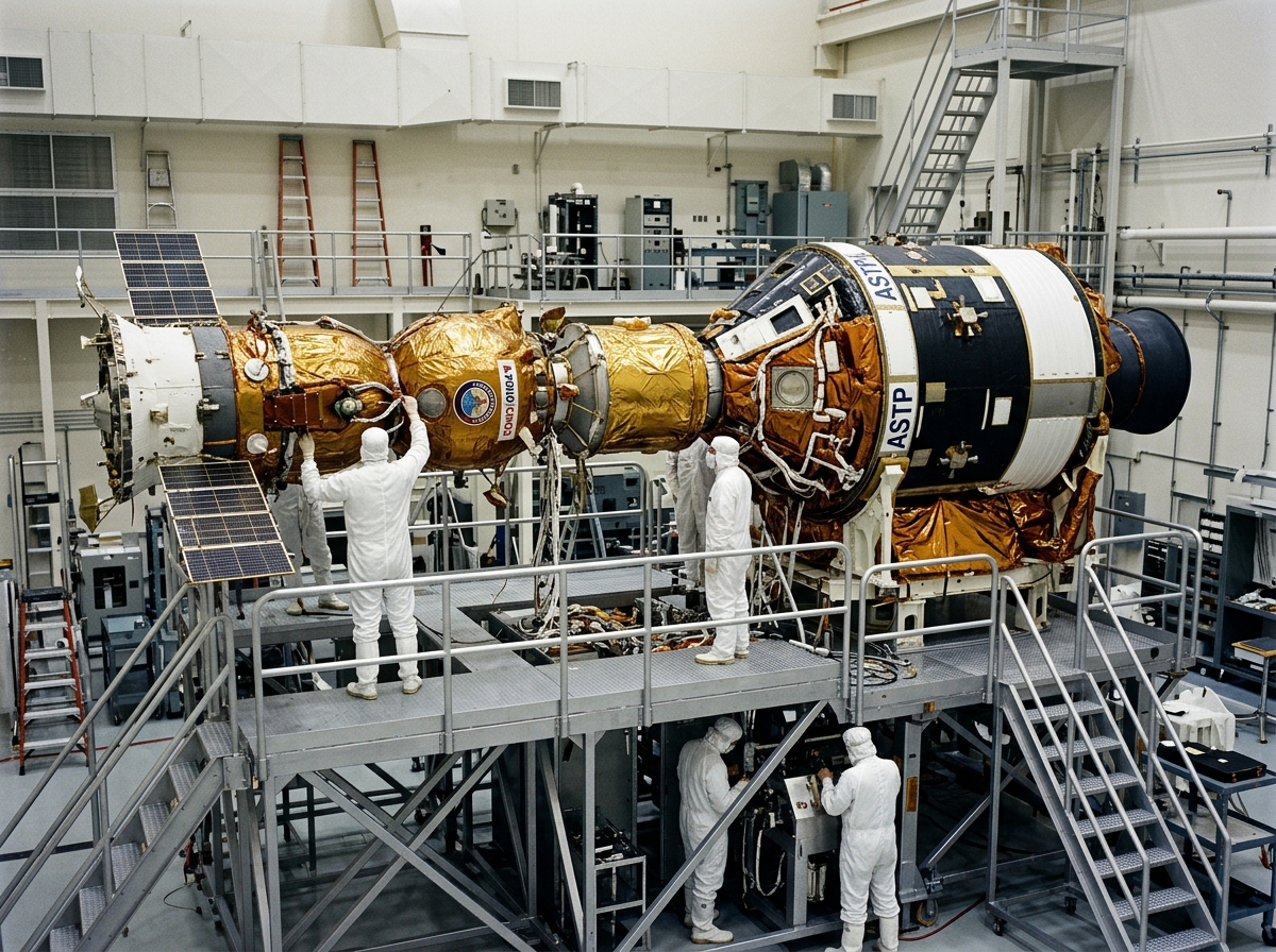Apollo-Soyuz Test Project (ASTP) was the first crewed spaceflight jointly conducted by the United States and Soviet Union, with Apollo 18 docking with Soyuz 19 in Earth orbit on 17 July 1975 during the height of Cold War political détente. The mission required development of a special docking module with an androgynous docking mechanism that could interface with both spacecraft, solving the incompatibility between their atmospheres (pure oxygen for Apollo, nitrogen-oxygen mix for Soyuz). The crews of Thomas Stafford, Vance Brand, and Deke Slayton (US) and Aleksei Leonov and Valeri Kubasov (USSR) conducted joint experiments, exchanged gifts, and shared meals during two days of docked operations. ASTP marked the end of the Space Race era and established the international cooperation that later defined the Space Shuttle-Mir program and International Space Station.