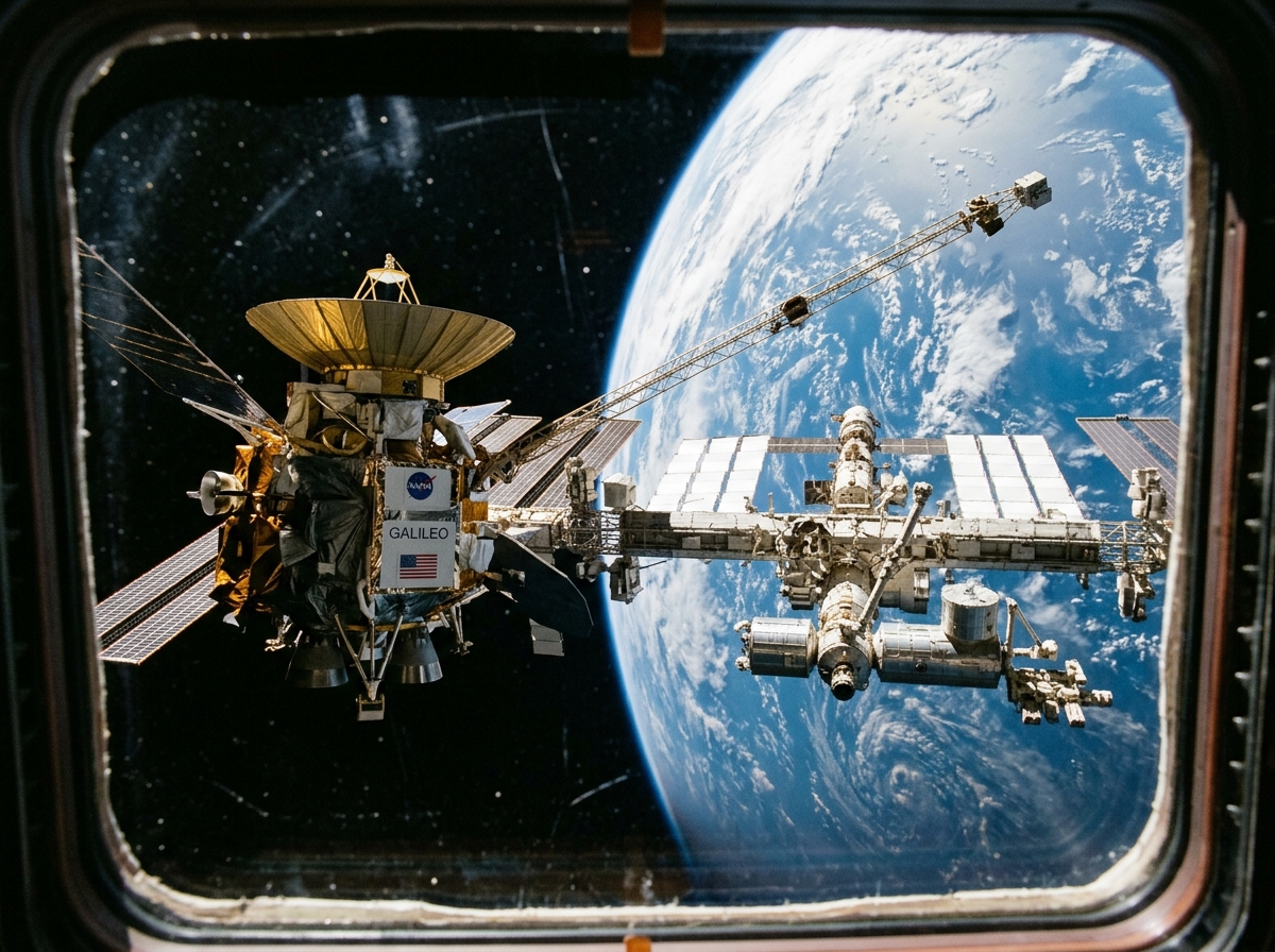 Galileo was NASA's Jupiter orbiter and atmospheric probe mission, launched on 18 October 1989 aboard the Space Shuttle Atlantis and reaching Jupiter in December 1995 after a gravity-assisted trajectory through the inner solar system. The probe separated from the orbiter and plunged into Jupiter's atmosphere on 7 December 1995, transmitting atmospheric composition and structure measurements for 57 minutes before being crushed by pressure. The orbiter then spent eight years studying Jupiter's moons, discovering that Europa, Ganymede, and Callisto all harbor subsurface liquid water oceans, with Europa's ocean now considered among the most promising habitats for extraterrestrial life in the solar system. Galileo was deliberately deorbited into Jupiter in September 2003 to prevent any possibility of contaminating Europa's ocean with terrestrial microbes.