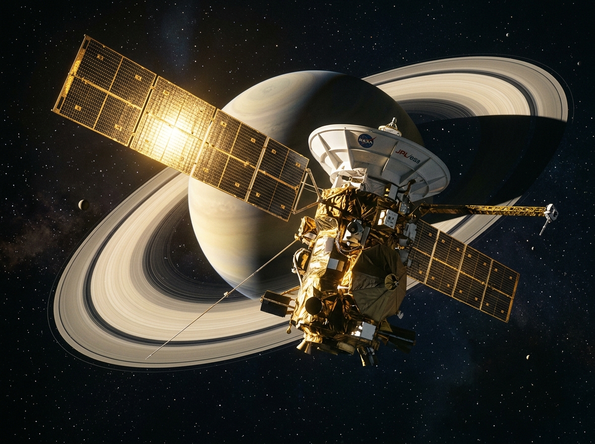 Cassini-Huygens was NASA and ESA's flagship Saturn exploration mission, launched on 15 October 1997 aboard a Titan IVB/Centaur and arriving at Saturn in July 2004 after gravity assists at Venus, Earth, and Jupiter. The Cassini orbiter conducted 13 years of Saturn system observations, discovering active geysers on Enceladus that sample a subsurface ocean, mapping Titan's methane lake system from orbit, and revealing hundreds of previously unknown ring structures and moonlets. The ESA-contributed Huygens probe descended through Titan's atmosphere on 14 January 2005, transmitting data for 72 minutes on the surface. On 15 September 2017, Cassini was deliberately plunged into Saturn's atmosphere to prevent contamination of Enceladus's ocean, transmitting science data until the moment of its destruction in one of the most scientifically productive planned spacecraft deaths in history.